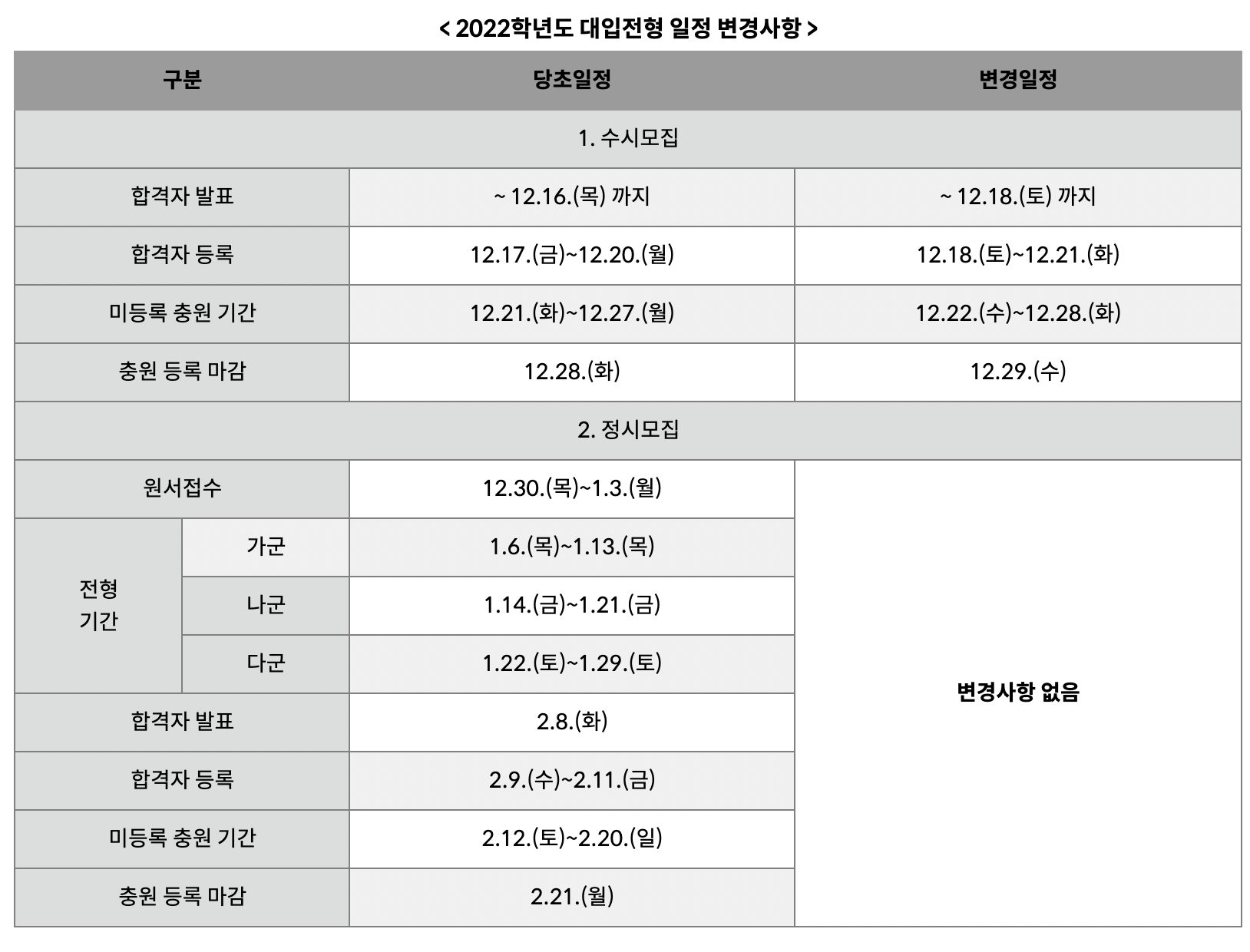 법원에서는 원래 소송 선고일보다 앞당겨진 12월 15일 오후 2시 이후 1심 선고를 발표할 예정이라고 한다. 평가원은 "2022학년도 대입전형 일정 변경사항"을 공지하였는데 일정에는 큰 변화가 없을 것으로 예상된다.