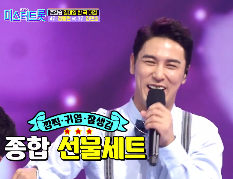 준결승 무대에 앞서 정동원은 장민호 결혼해야 하는데 라고 발언하며 도발하였다. 장민호 나이는 올해 44세로 집안 아빠보다 두살 더 많다는 정동원 나이는 14세로 30살 나이 차이가 났다.