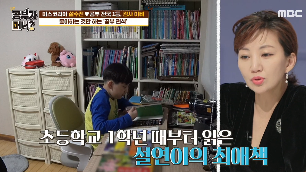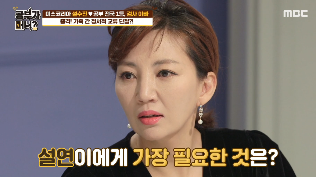 공부가 머니 게스트 설수진 출연에 집안 자녀교육 비법을 공개하였다. 미스코리아 출신 배우 설수진 아들 설연이는 자유와 공부 사이에서 갈등하는 모습을 보였다.